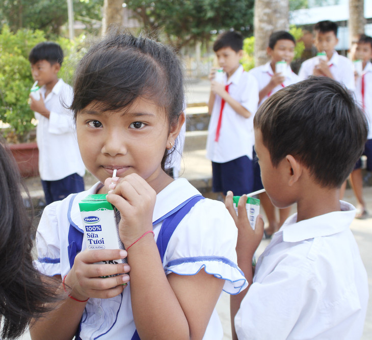 Ông Tú Minh Lập, Hiệu trưởng trường Tiểu học Tân Sơn, Trà Vinh chia sẻ: “Chương trình Sữa học đường với sự hỗ trợ của Nhà nước và doanh nghiệp giúp các em học sinh nâng cao sức khỏe, tầm vóc, đảm bảo sức khỏe cho các em học tập. Chúng tôi chủ động xây dựng kế hoạch, tổ chức triển khai, huy động Ban đại diện phụ huynh học sinh tuyên truyền lợi ích và phối hợp cùng nhà trường thực hiện chương trình. Phụ huynh đồng tình cho em mình được uống sữa, nhận thức lợi ích của sữa, không những học sinh được thụ hưởng chất lượng sữa tốt mà phụ huynh còn bớt gánh nặng về tài chính.”