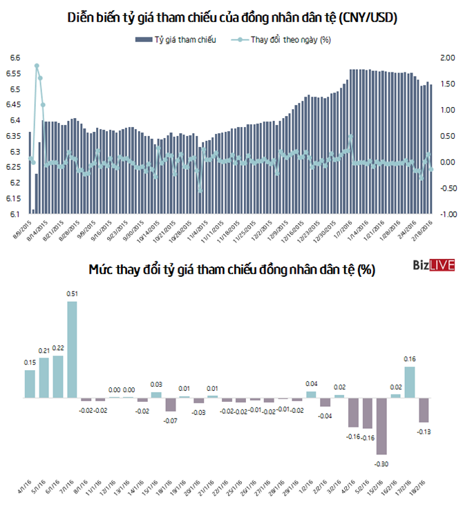 Ngày 18/2, Ngân hàng Trung ương Trung Quốc (PBoC) ấn định tỷ giá tham chiếu của đồng nhân dân tệ ở mức 6,5152CNY/USD, tương ứng mức giảm 0,13% so với phiên trước.