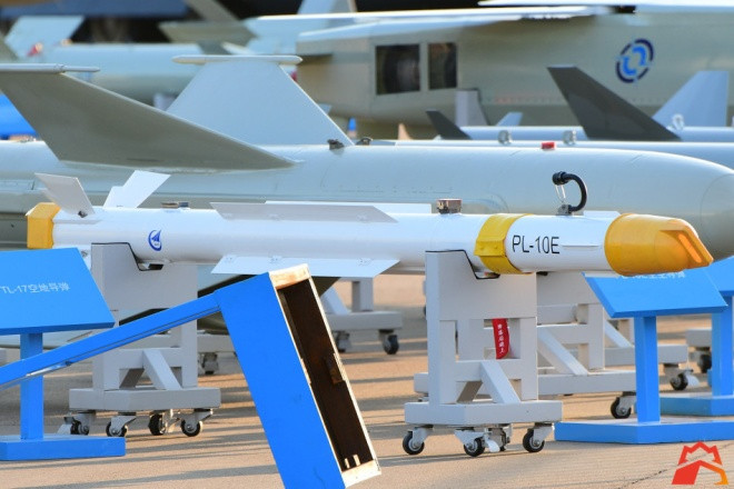 PL-10E là phiên bản mới nhất của dòng tên lửa không đối không PL-10. Đây là vũ khí tầm ngắn được phát triển cho tiêm kích J-20, đạt tầm bắn tối đa khoảng 22 km. Ảnh: Sina.