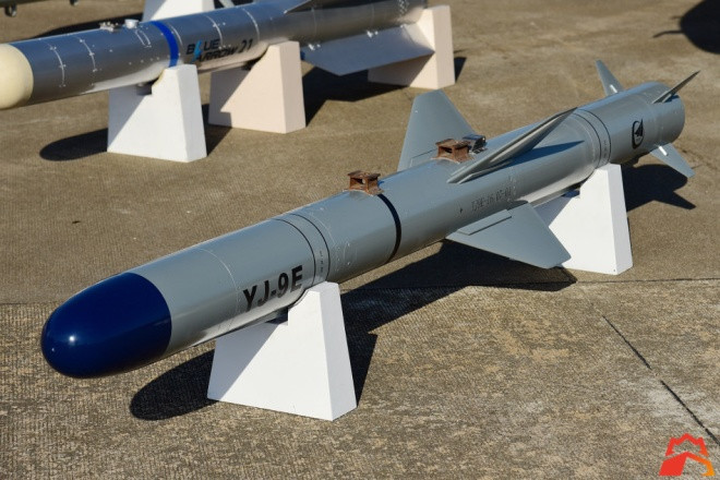 Tên lửa chống hạm mini YJ-9E có tầm bắn 18 km, được phát triển cho máy bay không người lái (UAV) và các loại tàu tuần tra cỡ nhỏ. Thông số chính thức của YJ-9E chưa được Trung Quốc công bố. Ảnh: Sina.