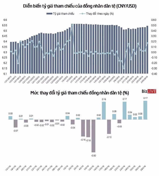 Ngày 29/2, Ngân hàng Trung ương Trung Quốc ấn định tỷ giá tham chiếu của đồng nhân dân tệ ở mức 6,5452CNY/USD, tương ứng mức tăng 0,174% so với chốt phiên trước, mạnh nhất kể từ 7/1.
