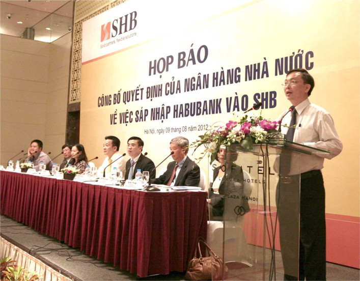 Bước ngoặt lịch sử tiếp theo của SHB diễn ra vào năm 2012, khi Ngân hàng Nhà nước chấp thuận cho SHB nhận sáp nhập Ngân hàng TMCP Habubank (HBB). Trước thời điểm sáp nhập HBB, SHB có vốn điều lệ gần 5 nghìn tỷ đồng, tổng tài sản trên 80 nghìn tỷ đồng, 240 chi nhánh phòng giao dịch trên cả nước và 2 chi nhánh SHB tại Lào và Campuchia, gần 5.000 cán bộ, nhân viên. Đến 30/6/2016, quy mô của SHB đã được nâng lên mạnh mẽ: vốn điều lệ xấp xỉ 10.000 tỷ đồng, tổng tài sản đạt hơn 212 nghìn tỷ đồng, cho vay khách hàng đạt 140 nghìn tỷ đồng, tiền gửi của khách hàng đạt 159 nghìn tỷ đồng.