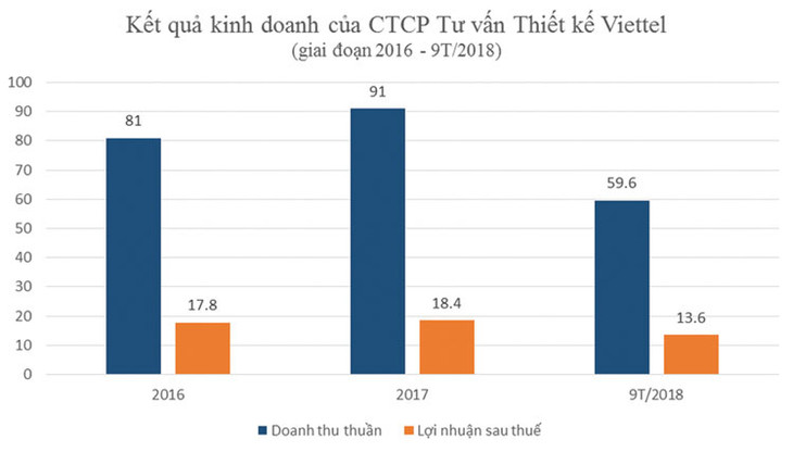 Năm 2016, doanh thu của Công ty đạt 81 tỷ đồng. Trong đó doanh thu với Tập đoàn Viettel và các đơn vị trực thuộc lên tới 67,6 tỷ đồng, chiếm 83,5%. Còn trong năm 2017, doanh thu từ Tập đoàn Viettel và các đơn vị phụ thuộc lên đến 85,1 tỷ đồng, chiếm 93% tổng doanh thu của Tư vấn Thiết kế Viettel.