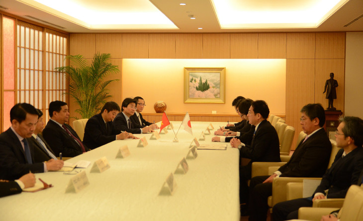 Trong khuôn khổ chuyến thăm và làm việc tại Nhật Bản, chiều 14/4/2017, tại Thủ đô Tokyo, Bộ trưởng Bộ Kế hoạch và Đầu tư Nguyễn Chí Dũng hội đàm với Ngoại trưởng Nhật Bản Fumio Kishida. Ảnh: Nguyễn Tuyến