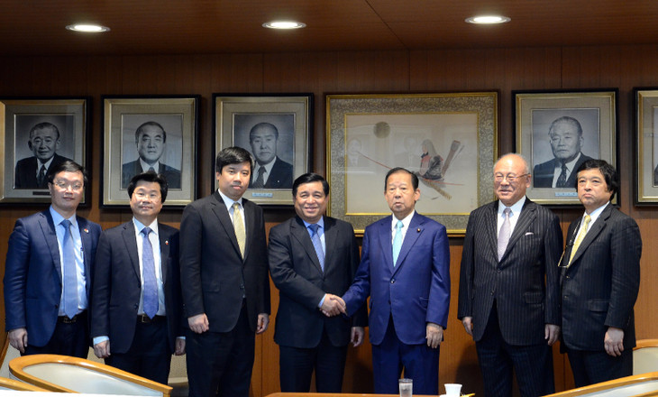 Bộ trưởng Bộ KH và ĐT Nguyễn Chí Dũng gặp gỡ Chủ tịch Liên minh Nghị sĩ hữu nghị Nhật - Việt, Tổng thư ký Đảng Dân chủ tự do (LDP) cầm quyền Toshihiro Nikai, tại Trụ sở Đảng LDP ở thủ đô Tokyo. Ảnh: Nguyễn Tuyến