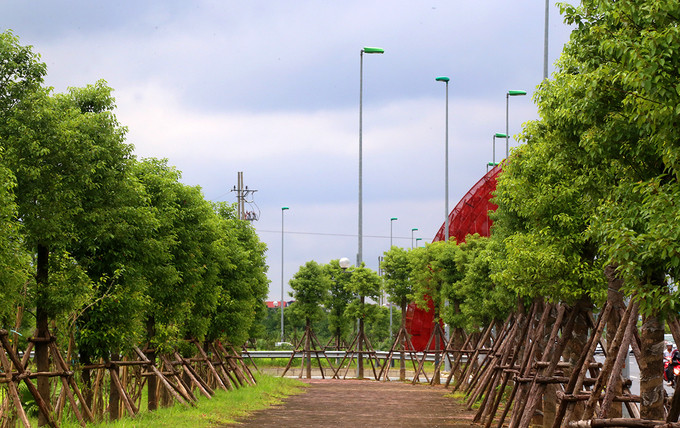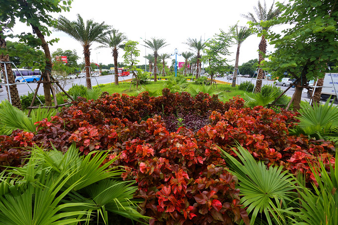 Cùng với hệ thống cây trang trí ở dải phân cách giữa, vỉa hè hai bên đường được trồng cây tỏa bóng mát cao khoảng năm mét.