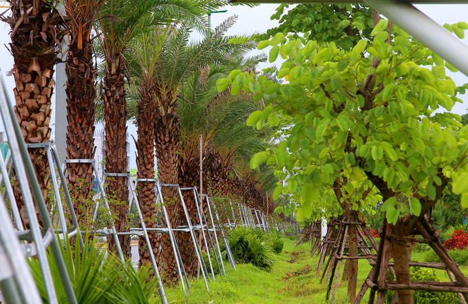 Hàng nghìn cây chà là, hơn 2.500 cây long não và hơn 1.000 cây hoa ban cùng hàng nghìn cây xanh khác đang phát triển xanh tốt trên đoạn giao thông này.