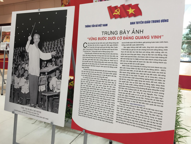 Để góp phần tuyên truyền Đại hội XIII của Đảng, Ban Tuyên giáo Trung ương phối hợp với Thông tấn xã Việt Nam trưng bày ảnh “Vững bước dưới cờ Đảng quang vinh” với 100 tấm ảnh tiêu biểu, là những tư liệu quý giới thiệu toàn diện những thắng lợi, thành tựu to lớn của đất nước trên chặng đường đấu tranh oanh liệt chống ngoại xâm và xây dựng, bảo vệ Tổ quốc dưới sự lãnh đạo của Đảng trong 91 năm qua (từ ngày 3/2/1930 đến nay).