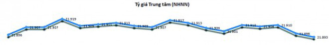 Trong 3 phiên trở lại đây (25-27/1), tỷ giá đã liên tục lao dốc. Với mức giảm gần 100 đồng/USD, hiện mức giá bán USD tại các NH chỉ còn phổ biến trong khoảng 22.350-22.360 đồng/USD (ngày 27/1). Tỷ giá trung tâm áp dụng cho ngày 27/1/2016 là 21.893 đồng, thấp hơn 3 đồng so với thời điểm ngày 4/1, khi cơ chế này được áp dụng.