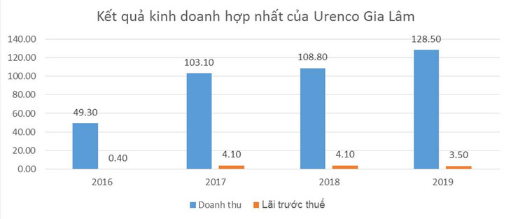 Về hoạt động kinh doanh, doanh thu và lợi nhuận của Urenco Gia Lâm tăng trưởng đột biến trong năm 2017, đạt lần lượt 103,1 tỷ đồng và 4,1 tỷ đồng. Sau đó doanh thu và lợi nhuận bình quân giai đoạn 2017 - 2019 lần lượt đạt 113 tỷ đồng và 3,9 tỷ đồng.