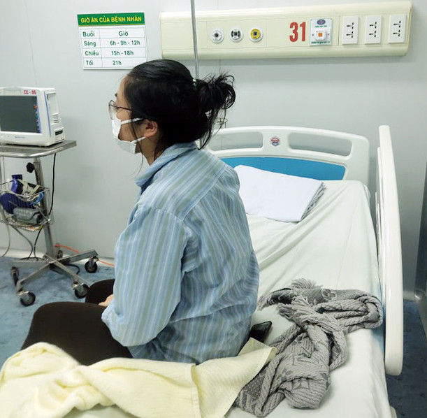 Máy bay hạ cánh xuống sân bay Nội Bài lúc 4h30 sáng ngày 2/3, cô không sốt, được lái xe riêng của gia đình đưa về nhà tại phố Trúc Bạch, quận Ba Đình. Tuy nhiên khi trở về nhà cô sốt nhẹ, nên đã chủ động tự cách ly tại phòng riêng, đeo khẩu trang, hạn chế tiếp xúc với người thân trong gia đình. Đến ngày 5/3 cô sốt 38 độ đã đi khám tại Bệnh viện Hồng Ngọc (cơ sở 55 Yên Ninh), sau đó được chuyển sang Bệnh viện Bệnh Nhiệt đới Trung ương cơ sở 2 ở Đông Anh, có kết quả xét nghiệm mắc Covid - 19 tối 6/3.