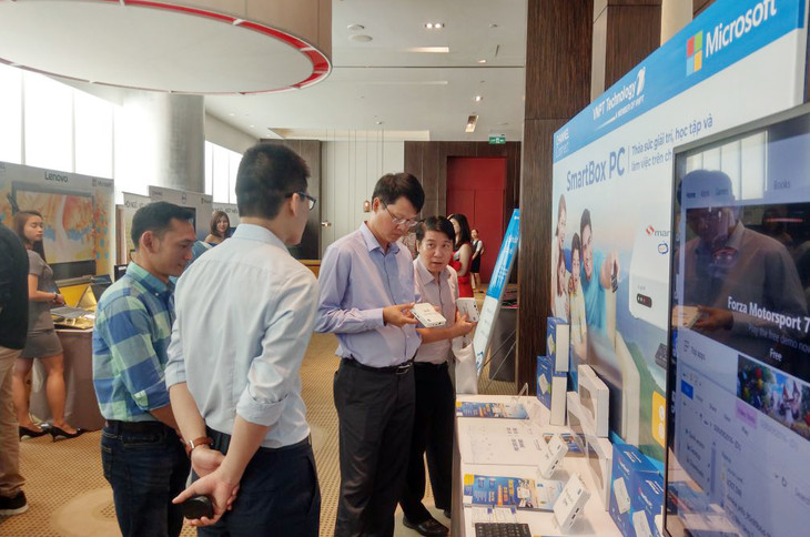 Sản phẩm Smartbox PC do VNPT Technology giới thiệu thu hút sự chú ý của nhiều quan khách tại Microsoft Channel Connect 2018. Ảnh: Thanh Tùng