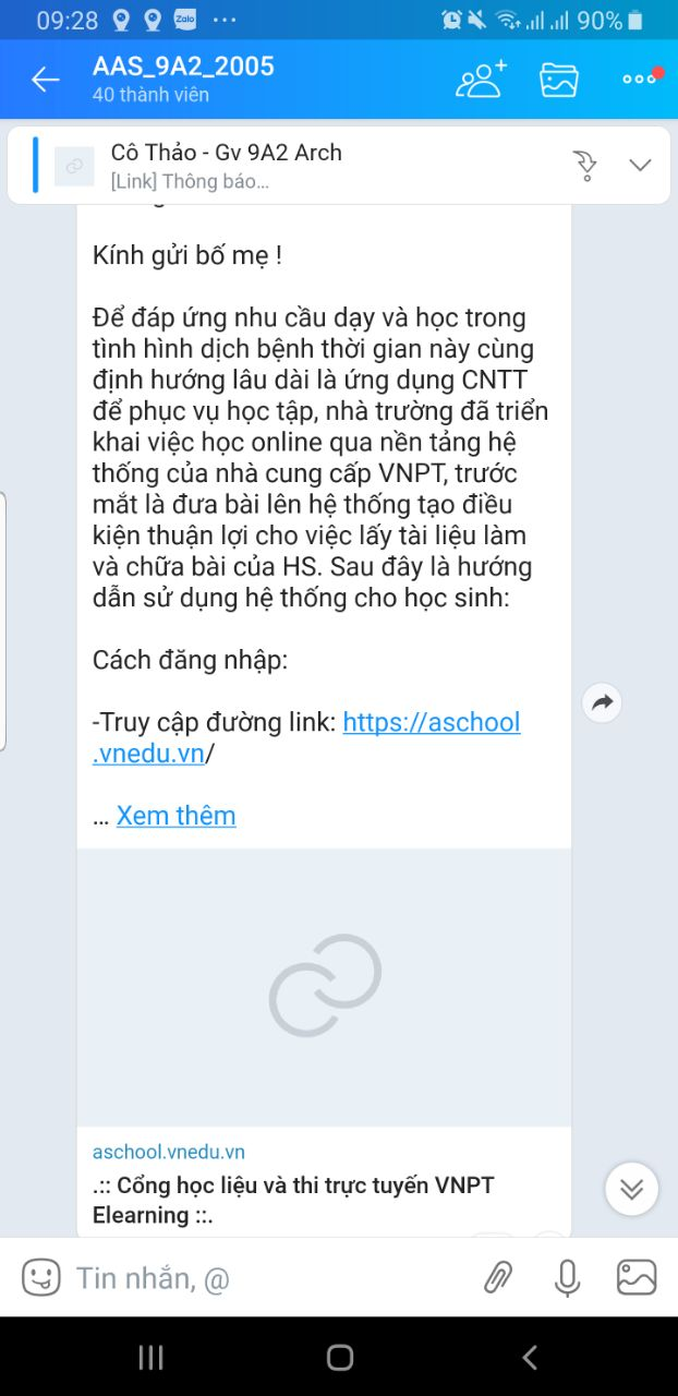 Ngay trong ngày 04/2, các thầy cô đã có thể đăng bài giảng và bài kiểm tra lên hệ thống VNPT E-learning của trường tại địa chỉ : https://aschool.vnedu.vn/.
