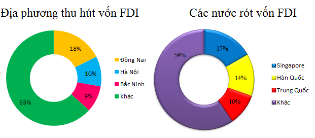 Cũng trong 2 tháng đầu năm đã có 35 quốc gia và vùng lãnh thổ có dự án đầu tư tại Việt Nam. Dẫn dầu là Singapore, Hàn Quốc, Trung Quốc... Địa phương thu hút được nhiều nhất vốn FDI trong số 36 tỉnh, thành là Đồng Nai, Hà Nội, Bắc Ninh...