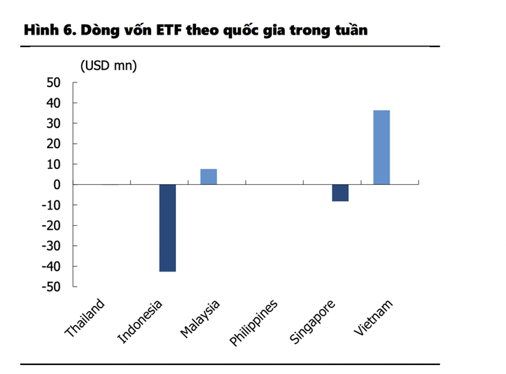 Đối với dòng vốn ETF, dòng vốn âm quay tiếp tục duy trì tại Đông Nam Á, ghi nhận ở mức 7 triệu USD. Cụ thể, hoạt động rút vốn phần lớn đến từ áp lực bán trên các ETFs chủ đạo tại Singapore và Indonesia. Ngược lại, dòng vốn tích cực tăng mạnh tại Việt Nam trong tuần trước, ghi nhận ở mức 36 triệu USD tương đương 827 tỷ đồng, cao nhất trong 3 tháng vừa qua.