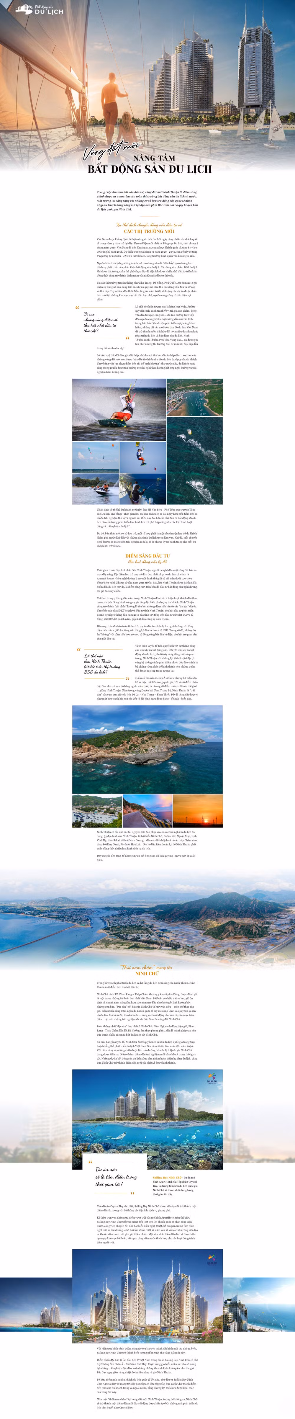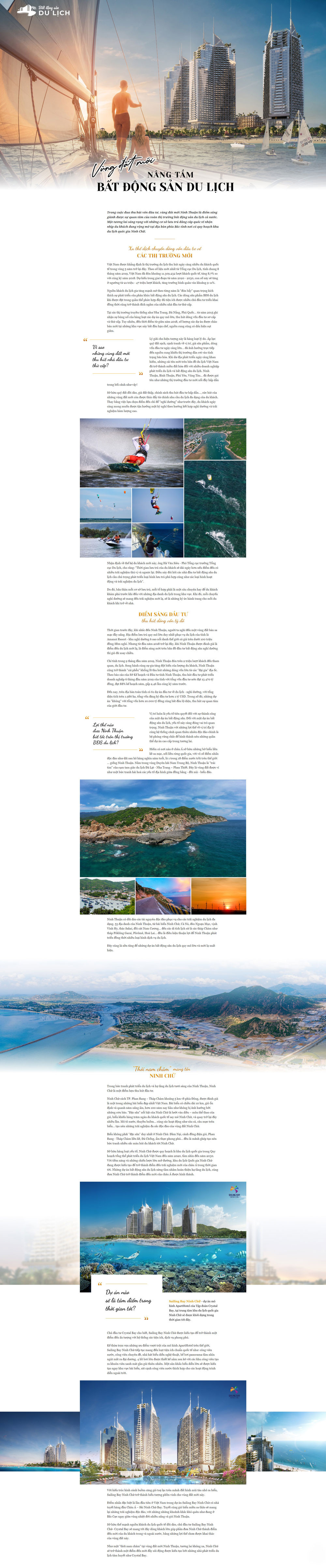 (BĐT) - Trong cuộc đua thu hút vốn đầu tư, vùng đất mới Ninh Thuận là điểm sáng giành được sự quan tâm của toàn thị trường bất động sản du lịch cả nước. Một tương lai sáng rạng với những cơ sở lưu trú đẳng cấp quốc tế nhộn nhịp du khách đang rộng mở tại địa bàn phía Bắc tỉnh nơi có quy hoạch khu du lịch quốc gia Ninh Chữ.