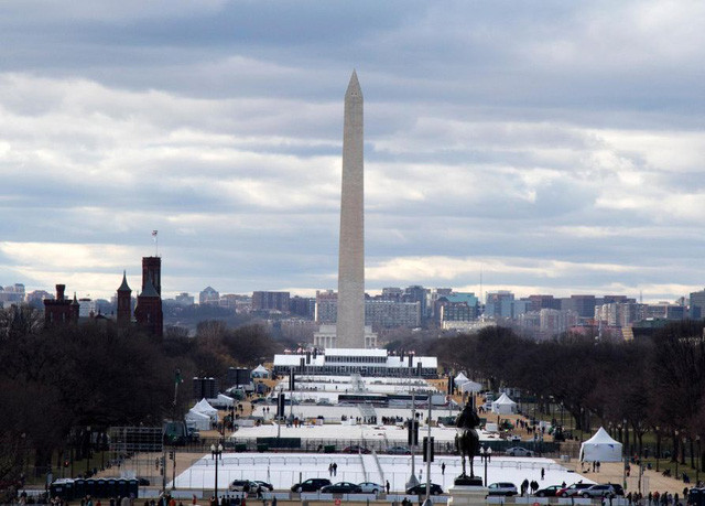 Quang cảnh tại Đài tưởng niệm Washington ngày 18/1, 2 ngày trước khi lễ nhậm chức chính thức diễn ra (Ảnh: Newsday)