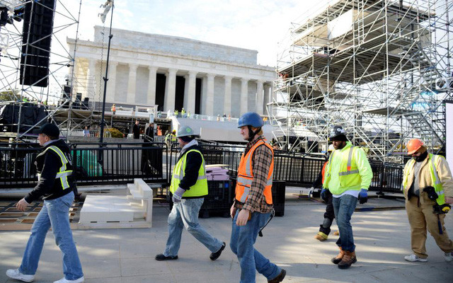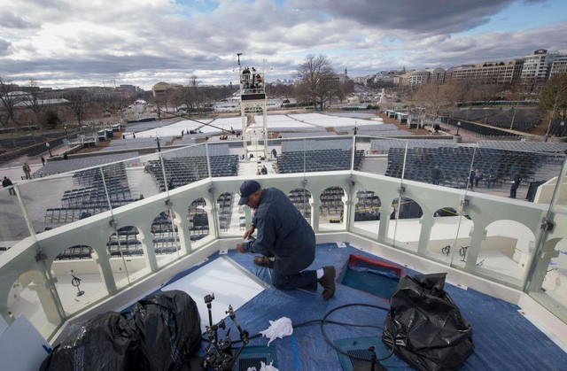 Các nhân viên chuẩn bị cho lễ nhậm chức chỉ còn chưa đầy 24 giờ đồng hồ để hoàn tất các phần việc cuối cùng (Ảnh: Getty)