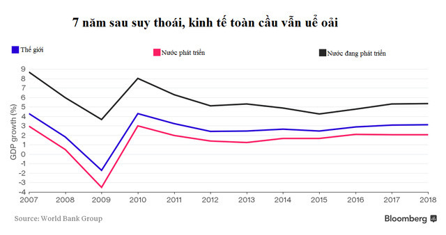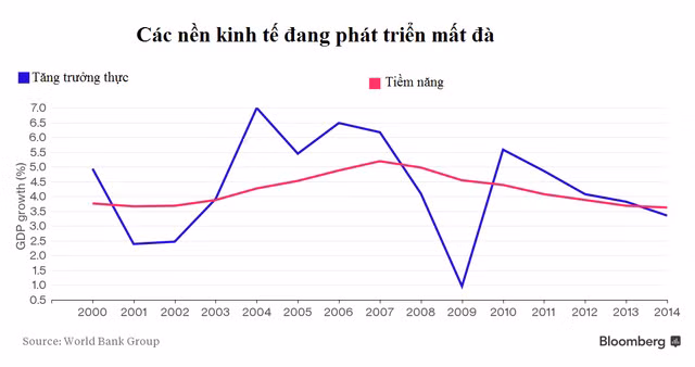 Bức tranh ngày càng tối đi ở các thị trường mới nổi là lý do lớn nhất khiến kinh tế thế giới bước vào năm thứ 5 liên tiếp có mức tăng trưởng dưới 3%. World Bank cũng hạ dự báo tăng trưởng năm 2016 của Trung Quốc từ 7% xuống còn 6,7%. Kinh tế Brazil sẽ suy giảm 2,5% trong năm nay, trong khi kinh tế Nga giảm 0,7%.