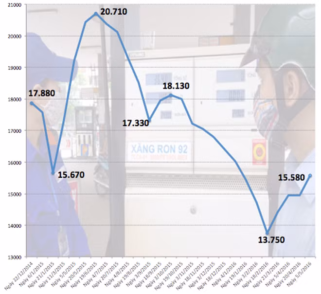 Từ đầu năm đến nay, giá xăng đã tăng 3 lần, tổng cộng là 1.820 đồng một lít sau khi về mức thấp kỷ lục trong 7 năm qua, xuống dưới 14.000 đồng mỗi lít hồi giữa tháng 2/2016.
