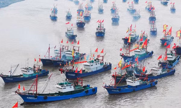 | Đội tàu cá cỡ lớn của ngư dân Trung Quốc ở đảo Hải Nam. Ảnh: SCMP |