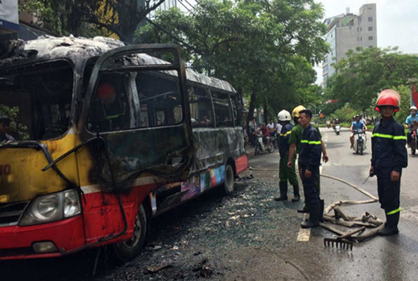 Lực lượng phòng cháy chữa cháy đã điều xe cứu hỏa cùng hàng chục lính đến hiện trường, sau hơn 10 phút thì dập tắt lửa, nhưng xe buýt chỉ còn trơ khung sắt.
